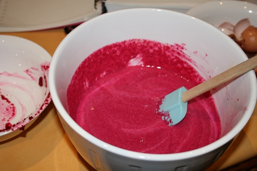 - Lọc bỏ bã, được hỗn hợp nước củ dền màu đỏ.