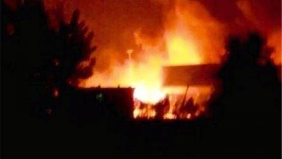 Lửa bốc lên ngùn ngụt sau vụ nổ tại nhà máy ở tỉnh Sơn Đông tối ngày 22/8 (Ảnh: Xinhua)