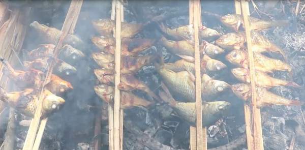 Cá chép ruộng nướng than củi à món ăn không thể thiếu trong thực đơn của du khách khi đến Hoàng Su Phì, tỉnh Hà Giang.