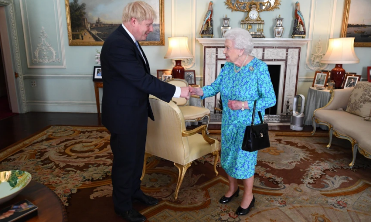 Nữ hoàng Elizabeth II (phải) và Thủ tướng Anh Boris Johnson tại Cung điện Buckingham hồi tháng 7/2019. Ảnh: WPA Pool.