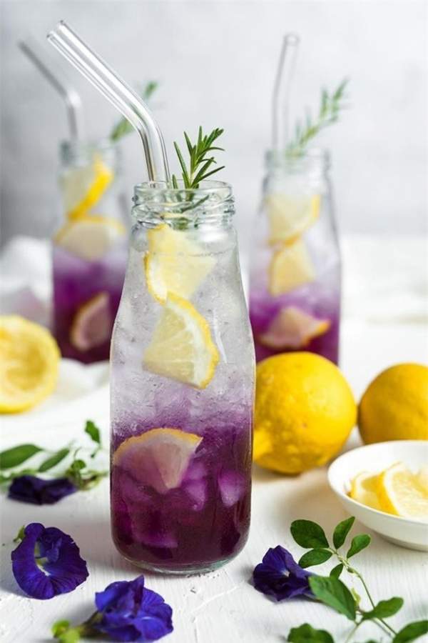 Nước chanh sẽ làm đổi màu của phần trà hoa đậu biếc, tạo nên hiệu ứng rất đẹp mắt. Có thể đổ nước chanh và trà hoa đậu biếc theo thứ tự ngược lại để tạo một hiệu ứng màu sắc mới.