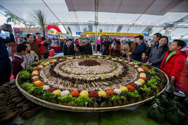 Ngày 7/12/2019 tại liên hoan ẩm thực và nghề truyền thống Hoà Bình. Các nghệ nhân ẩm thực Mường đã tạo nên một mâm cỗ lá đặc sắc nhất Việt Nam và được Tổ chức Kỷ lục Việt Nam - Hội Kỷ lục gia Việt Nam trao bằng chứng nhận xác lập kỷ lục mâm cỗ lá truyền thống của người Mường ở Hòa Bình lớn nhất Việt Nam. Ảnh: Tin tức