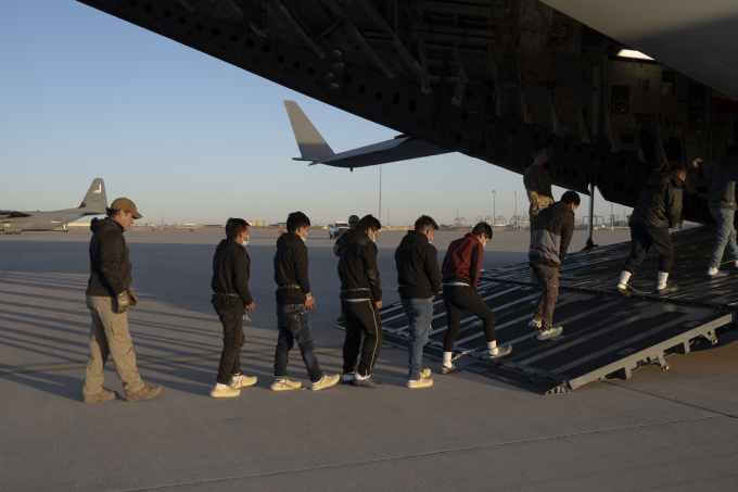 Ít nhất ba chuyến bay trục xuất của Mỹ đã hạ cánh tại Guatemala. Chính quyền Trump hiện sử dụng cả máy bay thương mại và quân sự cho hoạt động này. Hình ảnh được công bố tuần trước cho thấy nhiều người bị còng chân tay và xích cố định quanh bụng trước khi lên máy bay trục xuất.