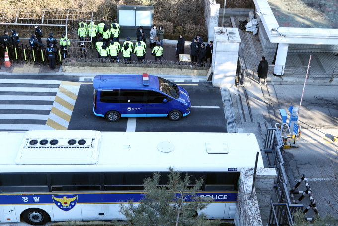 Đoàn xe của Bộ Tư pháp Hàn Quốc ngày 20/2 đưa Tổng thống Yoon Suk-yeol từ Trung tâm Giam giữ Seoul đến Tòa án Quận trung tâm Seoul để dự phiên điều trần đầu tiên trong vụ truy tố liên quan quyết định ban bố thiết quân luật hồi đầu tháng 12/2024. Phía ngoài tòa án là các xe cảnh sát đỗ thành hàng để đảm bảo an ninh.