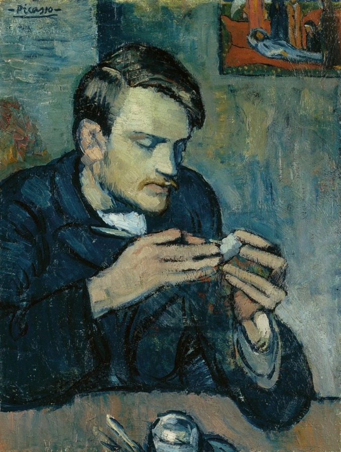Pablo Picasso (1881-1973) là nhà họa sĩ, điêu khắc người Tây Ban Nha. Khi danh họa đến Pháp năm 1901, ông chỉ 20 tuổi nhưng thử nghiệm nhiều phương pháp vẽ khác nhau. Theo Wright, việc Picasso từ bỏ chân dung cô gái ban đầu có lẽ không chỉ đơn thuần thay đổi chủ đề, mà còn là sự chuyển mình trong phong cách hội họa để "phát triển Thời kỳ Xanh (Blue Period) nổi tiếng của ông".