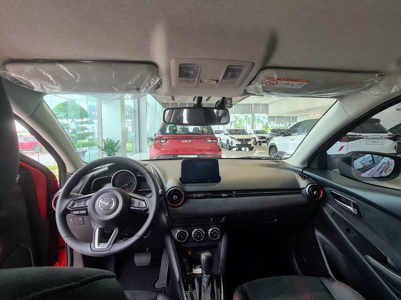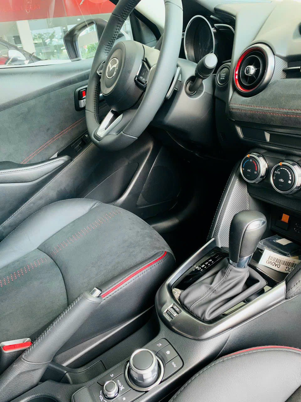 Ghế ngồi của Mazda2 Luxury và Premium bọc da pha nỉ. Vì là bản mang thiên hướng thể thao nên ghế ngồi dùng tông đỏ - đen trên chỉ khâu ghế và viền hốc gió điều hòa.