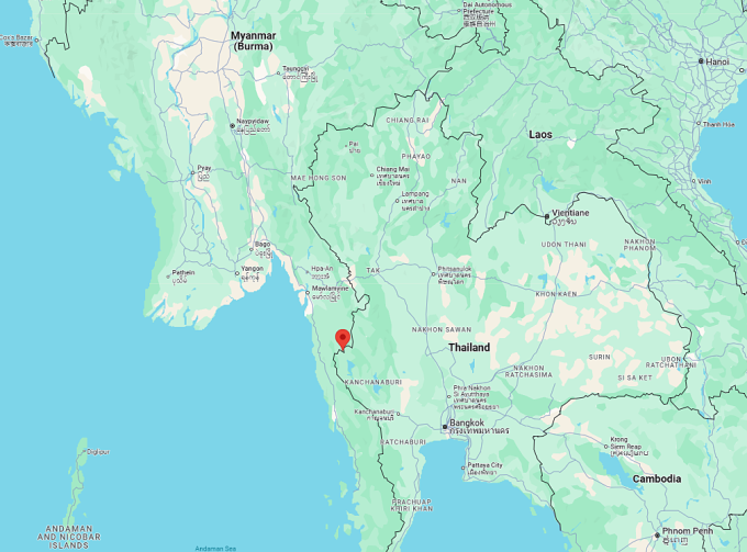 Vị trí thị trấn Payathonzu ở Myanmar, giáp Thái Lan. Theo Google Maps