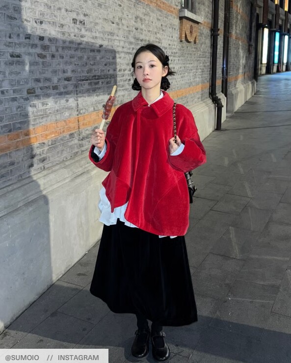 Đối với những ai thích nổi bật và tạo nên gu thẩm mỹ độc đáo, sự kết hợp màu sắc đỏ + trắng + đen có thể thể hiện cá tính tuyệt vời của bạn. Kết hợp áo khoác đỏ tươi với váy dài màu đen, tạo nên hiệu ứng thị giác mạnh mẽ. Ngoài ra, đôi giày Mary Janes cùng màu với váy vừa giữ được sự hài hòa vừa mang đến hiệu ứng kéo dài đôi chân.
