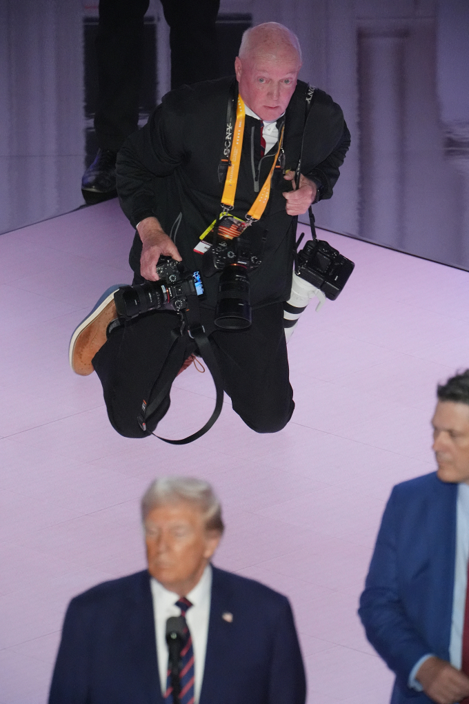 Phóng viên ảnh kỳ cựu Doug Mills, 65 tuổi, khi đó đang tác nghiệp cạnh sân khấu diễn thuyết, đã chụp loạt bức ảnh, đặc biệt là khoảnh khắc viên đạn bay sượt qua đầu ông Trump, tạo thành "vệt tử thần" trong vụ ám sát hụt chấn động nước Mỹ.