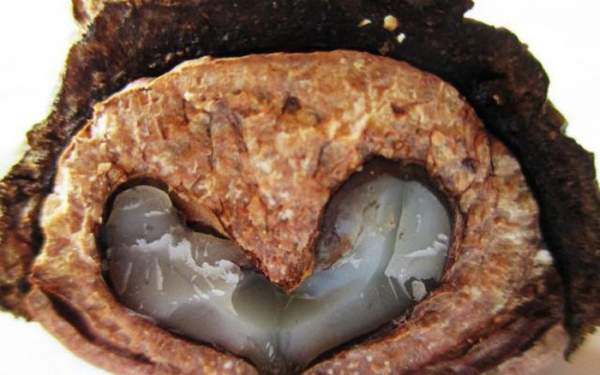 Quả trồi khi già trông như những hòn đá nâu xám, 1kg được chừng 30 quả. Vẻ ngoài không mấy bắt mắt nên nếu chỉ nhìn qua, không ai nghĩ rằng nó là một món ăn ngon. Ăn quả trồi cũng lắm công phu, phải huy động đủ các dụng cụ như nồi, búa, thớt… Trồi sau khi hái về, đổ vào nồi luộc gần 1 tiếng đồng hồ dưới lửa to cho chín, để ráo rồi mới đem ra xử lý.
