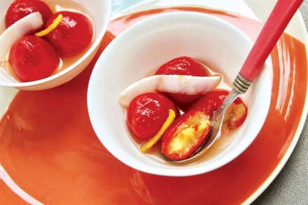 Cà chua chín 2 trái, thìa là, hành lá, cơm mẻ, dầu ăn và xốt gấc.