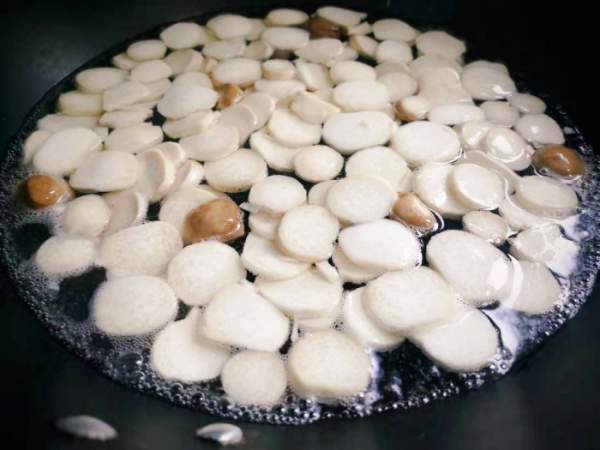 Đun sôi nước trong nồi, sau đó đổ nấm đùi gà vào chần qua nước trong 3 phút, vớt ra để ráo nước. Việc chần nấm sẽ giúp nấm thơm hơn và lúc xào sẽ nhanh chín hơn.