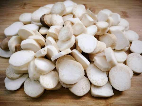 Nấm đùi gà cắt bớt gốc già, rửa sạch, thái lát mỏng.