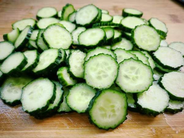 Ngâm dưa chuột trong nước muối nhạt một lúc, rửa sạch rồi thái thành từng lát mỏng, một số người thích loại bỏ vỏ của dưa chuột, trên thực tế, ăn dưa chuột cả vỏ không những có thể hấp thụ đầy đủ vitamin C mà còn giúp cơ thể giải độc hiệu quả.