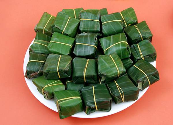 Bước 6: Đặt viên nem trên lá vông non hay lá chùm ruột, có thể dùng tấm ni lông mỏng và trong để cố định viên nem rồi gói lá lại.