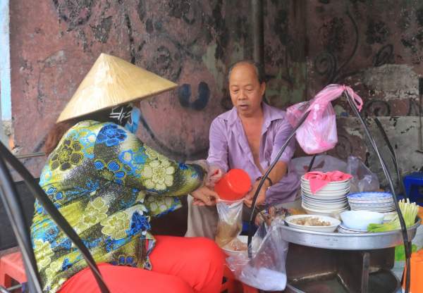 Nghe bà chủ nói, ông Văn Hoàng (50 tuổi), đang ngồi ăn tô bánh kế bên cũng cười nói: “Ừ! Tô bánh có gì đâu, mà không hiểu sao tôi nghiện mấy chục năm nay. Hồi đó sống gần đây, bán nhà rồi qua chỗ khác ở vẫn hay ghé đây ăn. Như bị nghiện á”. Nghe xong, cả quán cười rộn ràng. Có lẽ vì vậy mà tô bánh canh của tôi cũng ngon hơn gấp bội.