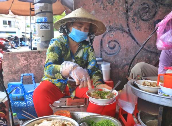 Đa phần, khách đến đây mua đồ ăn đều là người lao động bình dân, bởi một tô có giá 30.000 đồng được giữ suốt nhiều năm qua, kệ bão giá bên ngoài ra sao. Thực sự, tôi có chút ngạc nhiên, vì giữa cái nắng cháy da cháy thịt của TP.HCM, mà khách vẫn nườm nượp kéo tới mua ăn.