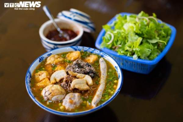 Vừa ăn ngon lành từng miếng, cô Hằng vừa giới thiệu: “Một bát bún có tóp mỡ, đậu, thịt bò, giò tai, mọc giòn, trứng vịt lộn và kèm một rổ rau sống. Loại mọc ở đây rất đặc biệt, là mọc giòn nhưng giòn mềm”.