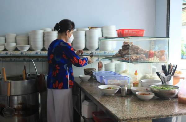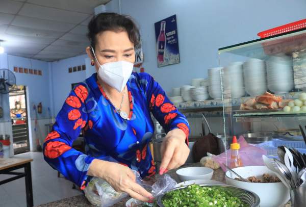 Cùng 3 người thân trong nhà tất bật làm món để kịp gửi sớm cho khách, bà nói được bận rộn, làm không kịp thở như vậy là hạnh phúc. Suốt 4 tháng qua, khi quán đóng cửa, bà cùng các nhân viên (chủ yếu là người thân) ở yên một chỗ. Hơn 30 năm mở tiệm, hiếm khi nào bà dừng bán lâu đến vậy. Nhiều lúc nhớ nghề, nhớ khách, nhưng bà cũng “bấm bụng chịu” vì không thể làm gì hơn.