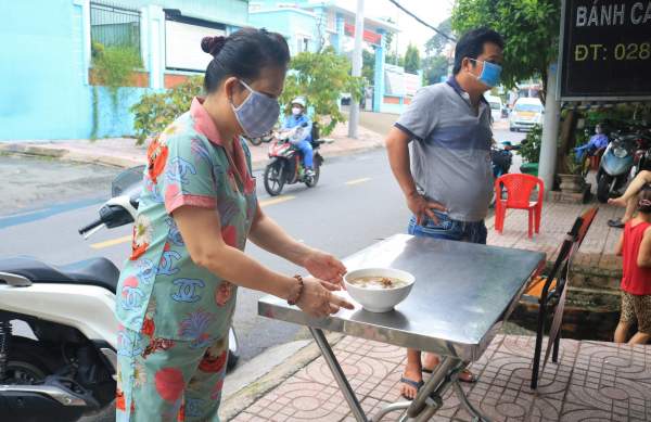 “Lúc bả nghỉ bán thì thèm thôi rồi, vậy nên mấy ngày nay ngày nào cũng mang tô qua đây. Hết dịch ngồi ăn tại chỗ nói chuyện với bà ấy luôn thì vui”, bà Phượng cười.