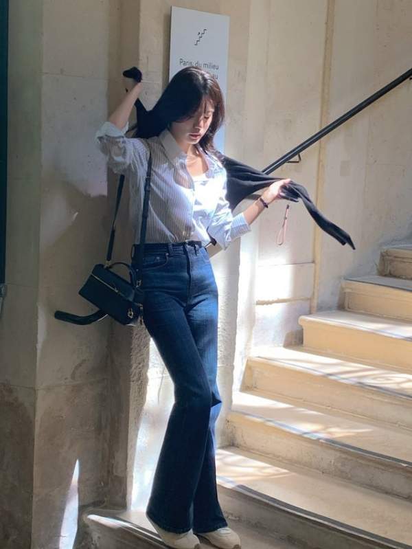 Nếu bạn muốn một phong cách thanh lịch hơn, áo sơ mi kẻ sọc chính là lựa chọn khó có thể bỏ qua. Đây là kiểu áo không bao giờ lỗi mốt, vừa trẻ trung lại vừa nhã nhặn. Khi kết hợp cùng jeans xanh và sneaker trắng, bạn sẽ có ngay diện mạo năng động, thoải mái mà vẫn cuốn hút.
