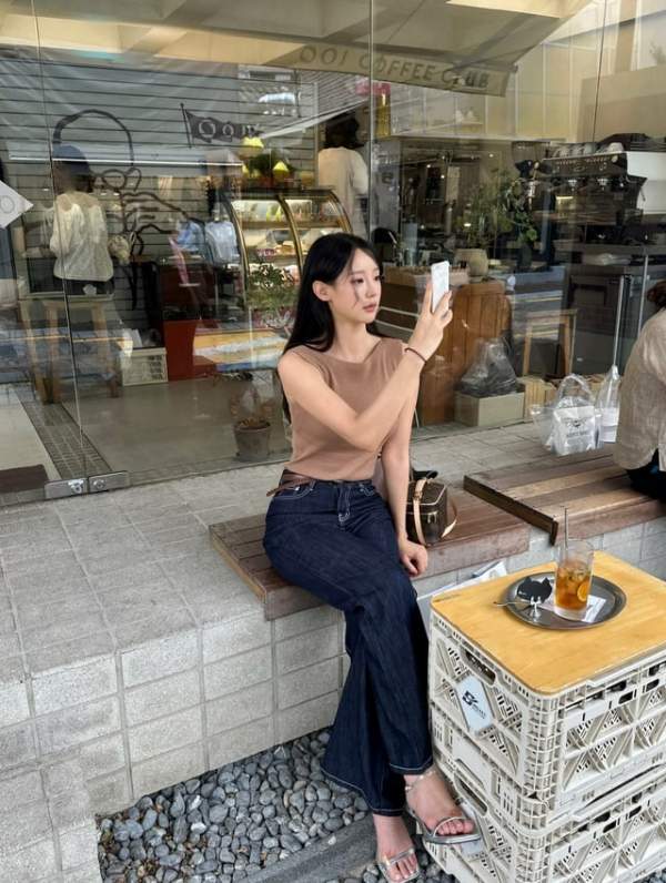 Tại môi trường công sở, áo thun cổ 3 phân màu nâu phối cùng jeans ống loe sẽ mang đến sự cân bằng tuyệt vời: đủ chỉn chu để giữ nét chuyên nghiệp, lại đủ phóng khoáng để không gò bó.