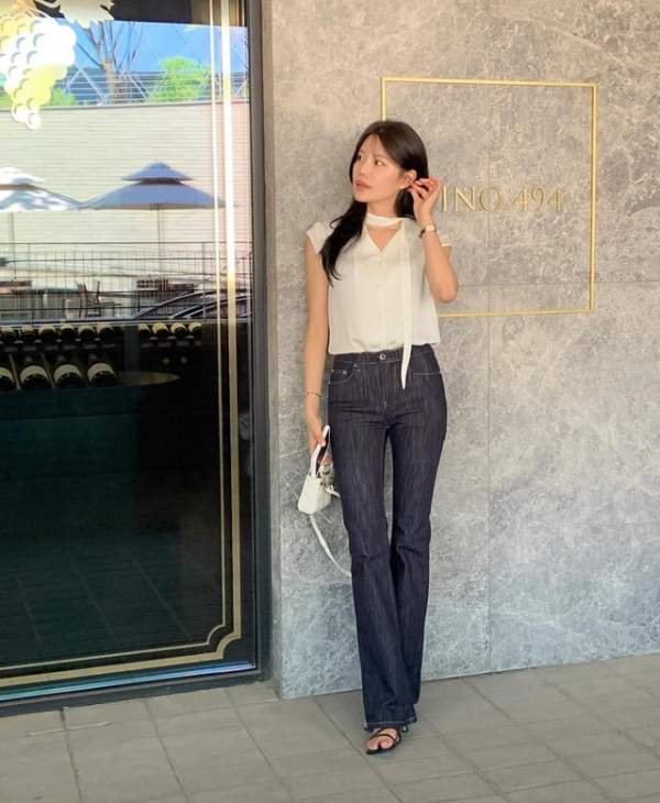 Với những ai yêu thích nét nữ tính, áo blouse trắng nhấn eo phối cùng quần jeans là công thức không bao giờ sai. Chi tiết tôn dáng này giúp người mặc trông cao ráo, gọn gàng mà không cần quá cầu kỳ.
