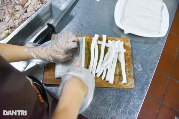 Bánh phở sử dụng tại quán được đặt làm riêng bằng phương pháp tráng thủ công. Sợi phở dùng tới đâu được cắt tới đó. "Nếu sử dụng loại phở thông thường trên thị trường thì khi thả vào bát nước dùng nóng hôi hổi sẽ dễ bị nát", chị Linh cho biết.