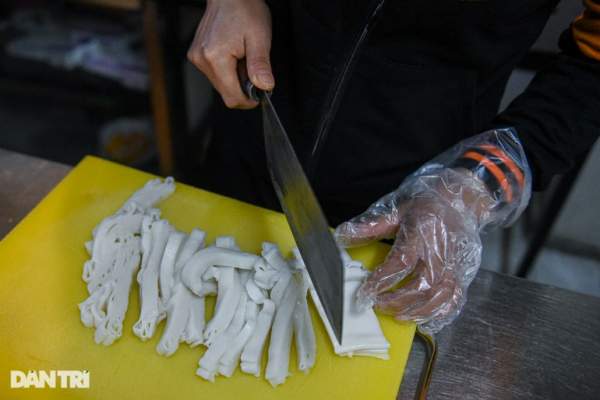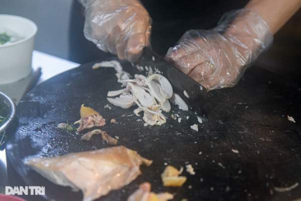 "Gà ngon được lựa chọn kỹ lưỡng, sau đó làm sạch mổ luộc tới độ vừa chín là vớt ra, nếu để gà quá lửa thịt sẽ bị nhừ làm phở ăn bã sẽ mất ngon. Mỗi ngày quán nhà tôi bán gần 500 bát phở tùy từng hôm. Ảnh hưởng có dịch Covid-19 thì số lượng cũng có giảm hơn so với những ngày bình thường" anh Trà cho biết.