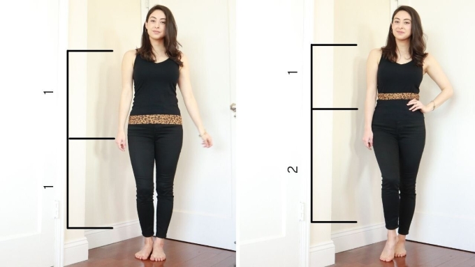 Jo Hayes, chuyên gia tư vấn thời trang và nghi thức xã giao tại Australia, cho biết điểm lý tưởng để chia cơ thể bằng trang phục là ngay dưới đáy lồng ngực (cho phần trên) hoặc ngay trên đầu gối (cho phần dưới).