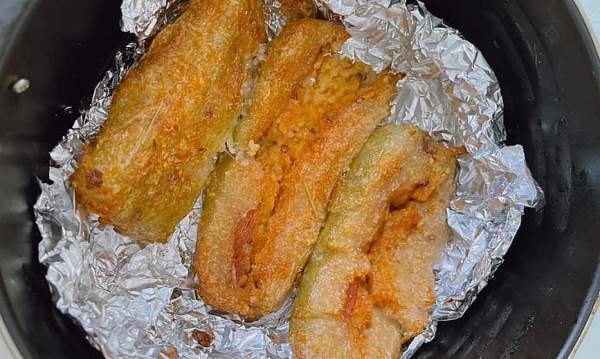 Nếu có nồi chiên không dầu, bạn nên sử dụng thiết bị này để rán bánh chưng thay cho cách rán bằng chảo thông thường. Cách làm cực kỳ đơn giản. Hãy lót một lớp giấy bạc vào lòng nồi chiên (có thể cắt bánh chưng thành miếng to, nhỏ tùy thích nhưng miếng bánh nhỏ thường nhanh vàng giòn hơn).