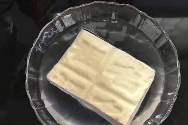 1. Rửa sạch đậu phụ bằng nước sạch và ngâm trong nước muối nhạt trong 20 phút. Việc ngâm trong nước muối nhạt không những có thể loại bỏ mùi tanh trong đậu phụ mà còn làm tăng vị ngon ở đáy.