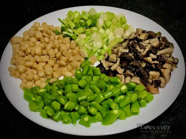 - Nấm đông cô: 15-20 cái. Ngâm nước sôi cho mềm. Vắt sạch nước, cắt gốc và xắt hạt lựu.