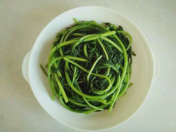Sau đó vớt rau vào một tô nước thật lạnh để rau xanh và giòn. Rồi vớt ra rổ cho ráo nước. Khi rau đã ráo nước thì xếp lên đĩa.