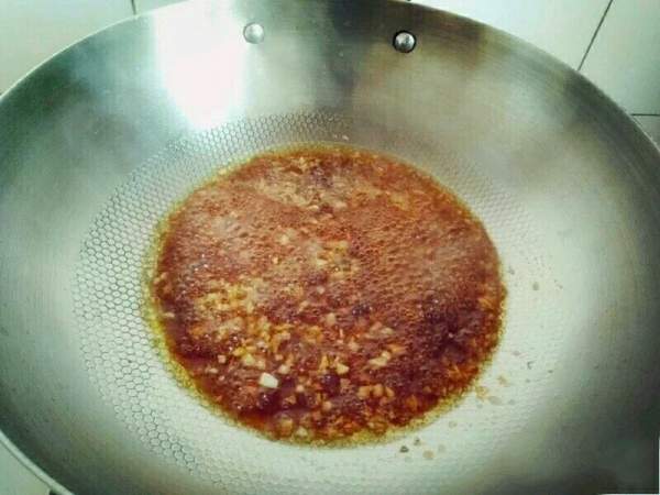 Sau đó đổ phần nước tương dầu hào vào phần tỏi, đun sôi trở lại thì tắt bếp.