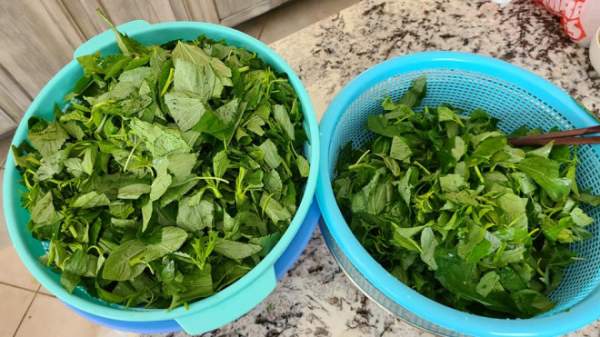 - Rau hái xong nhặt sạch, đem rửa sạch.