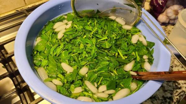 - Rau vừa chuyển sang màu xanh là vớt ra thau nước đá liền. Nước đá giúp rau giữ màu xanh.