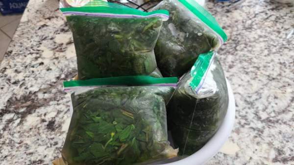 - Sau đó cho cả rau cả nước và đá vào bọc đem cấp đông liền.