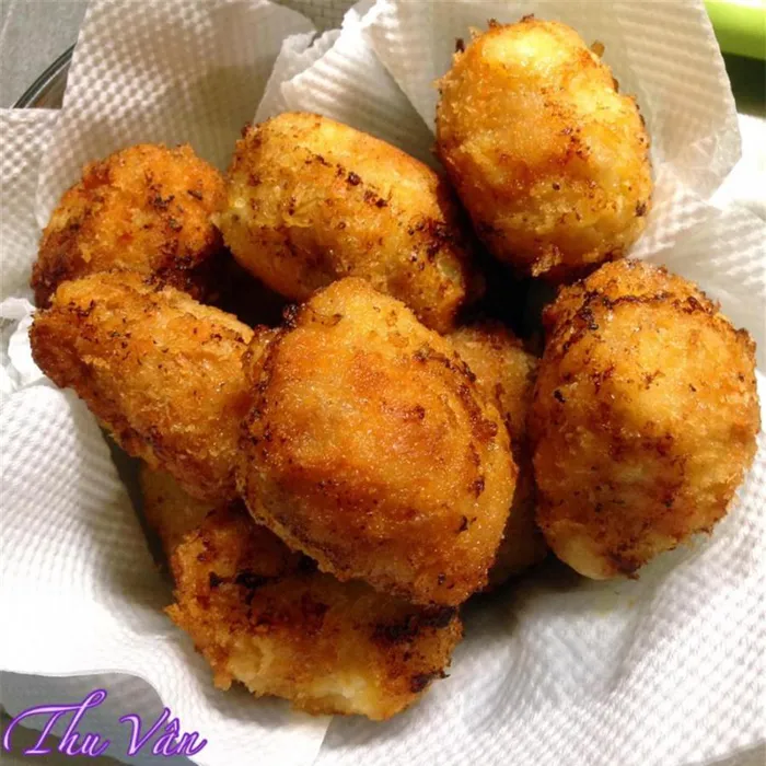 Bước 4: Đổ dầu ăn ước lượng ngập nửa viên thịt, đun nóng đến khoảng 180 độ, cho thịt đã lăn qua bột chiên xù vào rán. Để lửa vừa, rán đến khi lớp vỏ vàng là được (khoảng 3-4 phút).