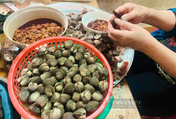 Sò huyết sau khi chần qua nước sôi sẽ được tách lấy phần thịt và phần huyết. Ảnh: TA