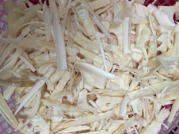 Các công đoạn sơ chế măng hoàn toàn phải khô ráo, không để nước dính vào sẽ khiến măng nhanh nhũn và hỏng.