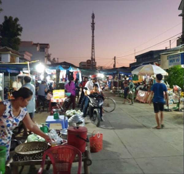 Chợ quê họp từ tờ mờ sáng, đủ bánh trái, nước giải khát, bún nước lèo, cái gì cũng hấp dẫn, mê hoặc. Những mẹt bánh cam, bánh da lợn, bánh bò, xôi vị, bánh chuối, bánh sa kê, bông lan… đầy ắp, chỉ 2.000 đồng-3.000 đồng/cái. Mít, chuối, chôm chôm bán đầy chợ.