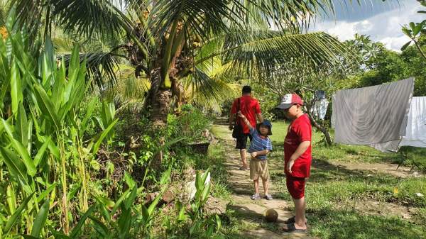 Trẻ em thích mê trong không gian đầy cây xanh ở quê nhà