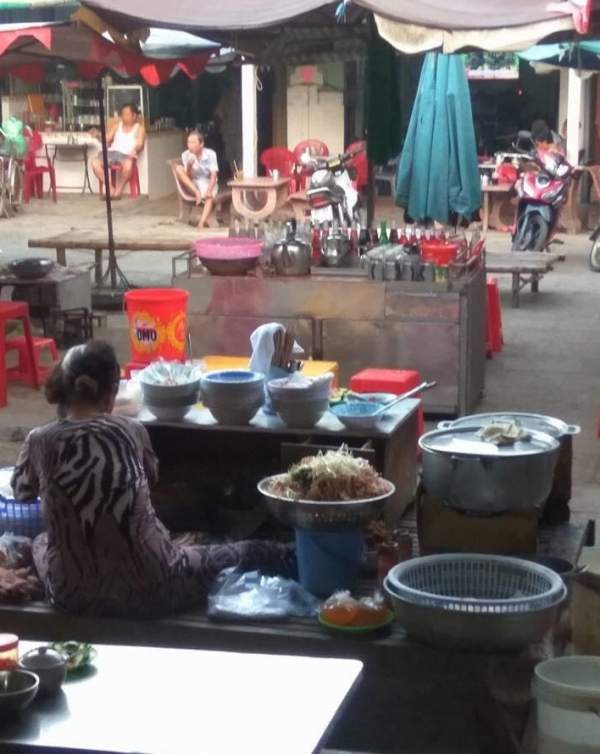 Bún nước lèo ở đây còn rẻ hơn thành phố nhiều, chỉ 10.000 đồng/tô, dù không kèm theo chả giò hay bánh cống, nhưng ăn cũng rất đậm đà, khiến người từ thành phố, lâu lâu về quê nhà đều ăn đã cái bụng, thỏa cơn nhung nhớ. Kế tới là hàng nước giải khát, 5.000 đồng/ly cà phê, bà chủ vồn vã thấy khách đã cười niềm nở. Có bà con lâu ngày gặp lại, lại dúi vào tay người kia bịch bánh, quầy dừa xiêm mới chặt hoặc chục bánh ít nhà làm nhân dừa “ngon bá cháy”.