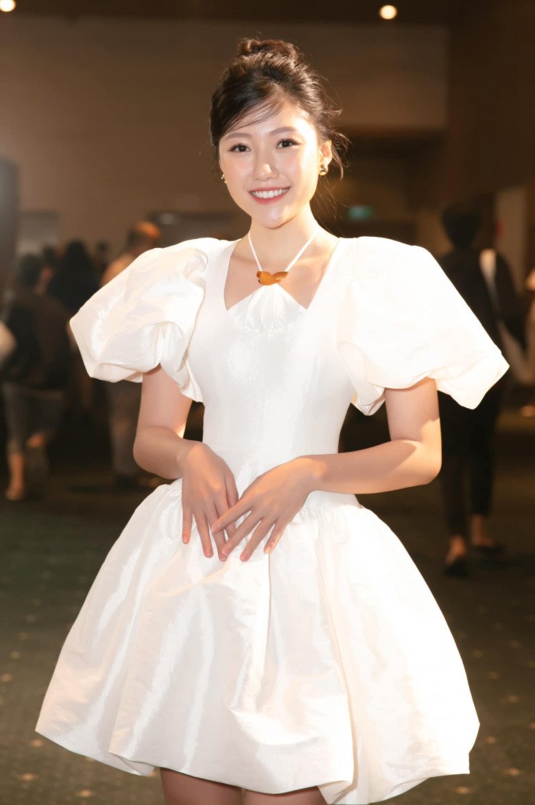 Chọn cho mình bộ váy style công chúa điệu đà, Huỳnh Ân thu hút sự chú ý tại thảm đỏ mới đây với ngoại hình long lanh, rực rỡ tuổi 23.