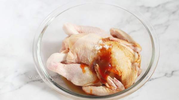 Cho gà đã ướp vào, nước sốt ướp không cần đổ vào, chỉ cần ướp gà qua đêm là được, nước sốt nhiều quá sẽ ảnh hưởng đến vị món ăn.