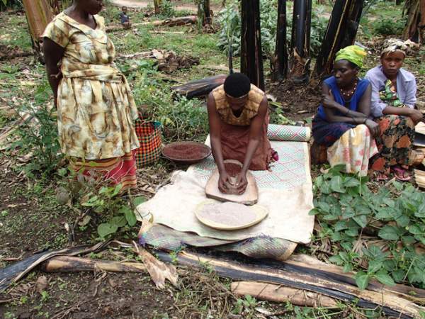 Trong khi đó, người khác sẽ có nhiệm vụ rang những hạt lúa miến lên và giã nhỏ, bỏ vào hỗn hợp chuối cùng thân cây lúa miến đã giẫm nát.