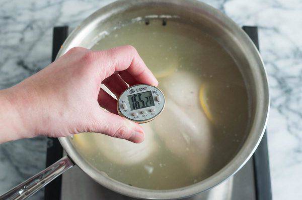 Sau đó tắt bếp và vớt thịt ra để nguội. Không nên để ngâm lâu trong nước nóng vì chính điều này sẽ khiến thịt bị khô. Đừng đổ bỏ nước luộc ức gà vì có thể dùng để nấu cơm, làm các món canh khác.