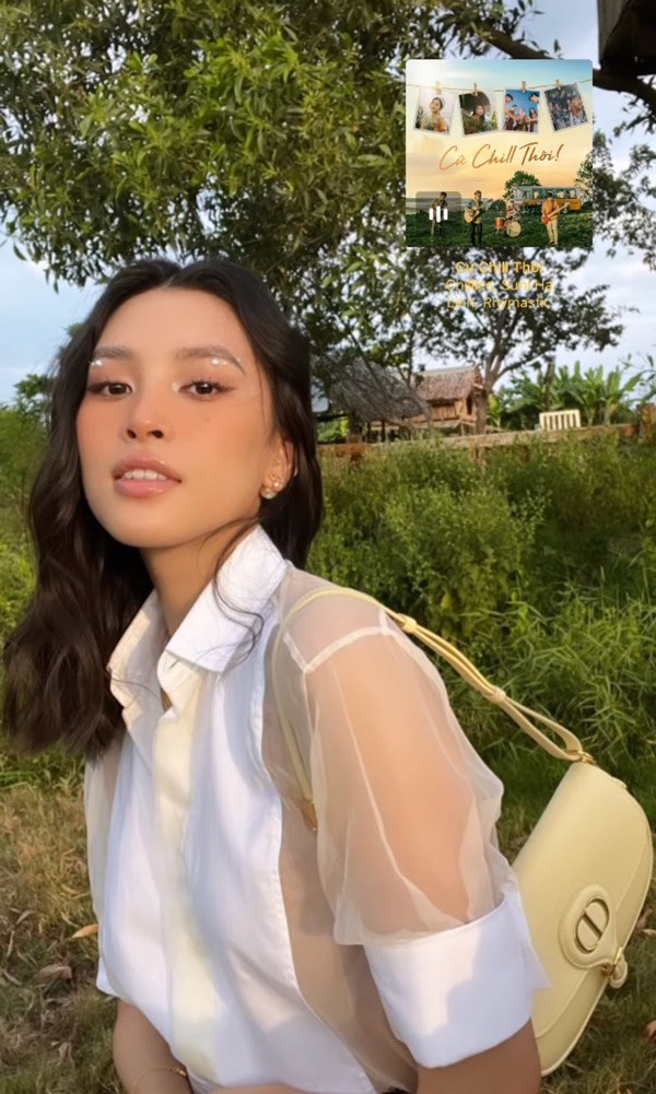 Tiểu Vy để lấp ló chiếc áo bên trong được các tín đồ thời trang chụp lại được thông qua đoạn clip ngắn.