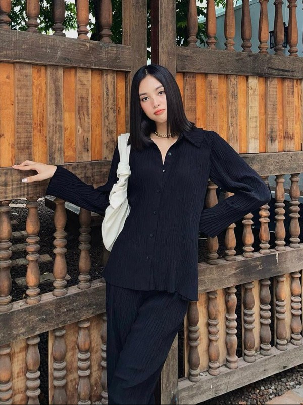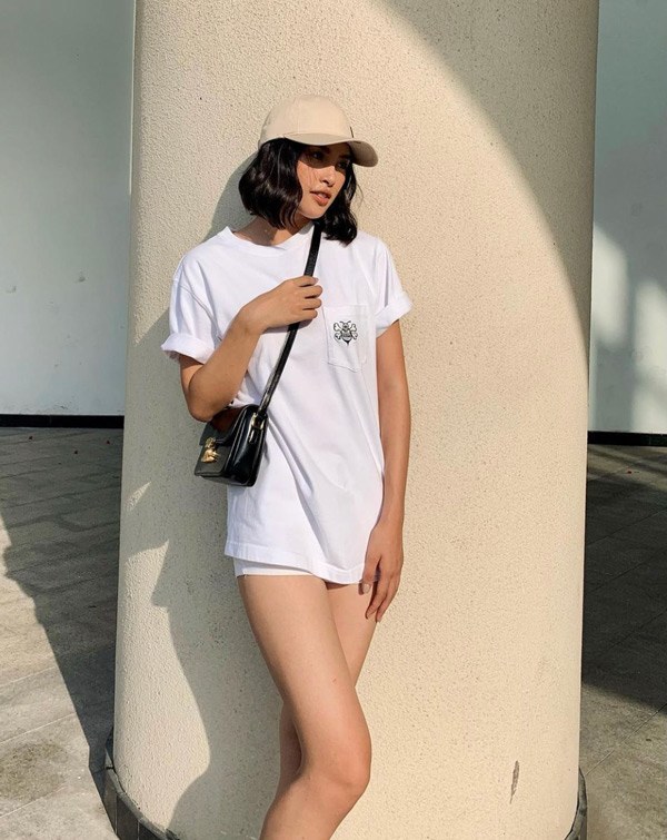 Cô thường xuyên phối đồ với hai tông màu trắng đen.